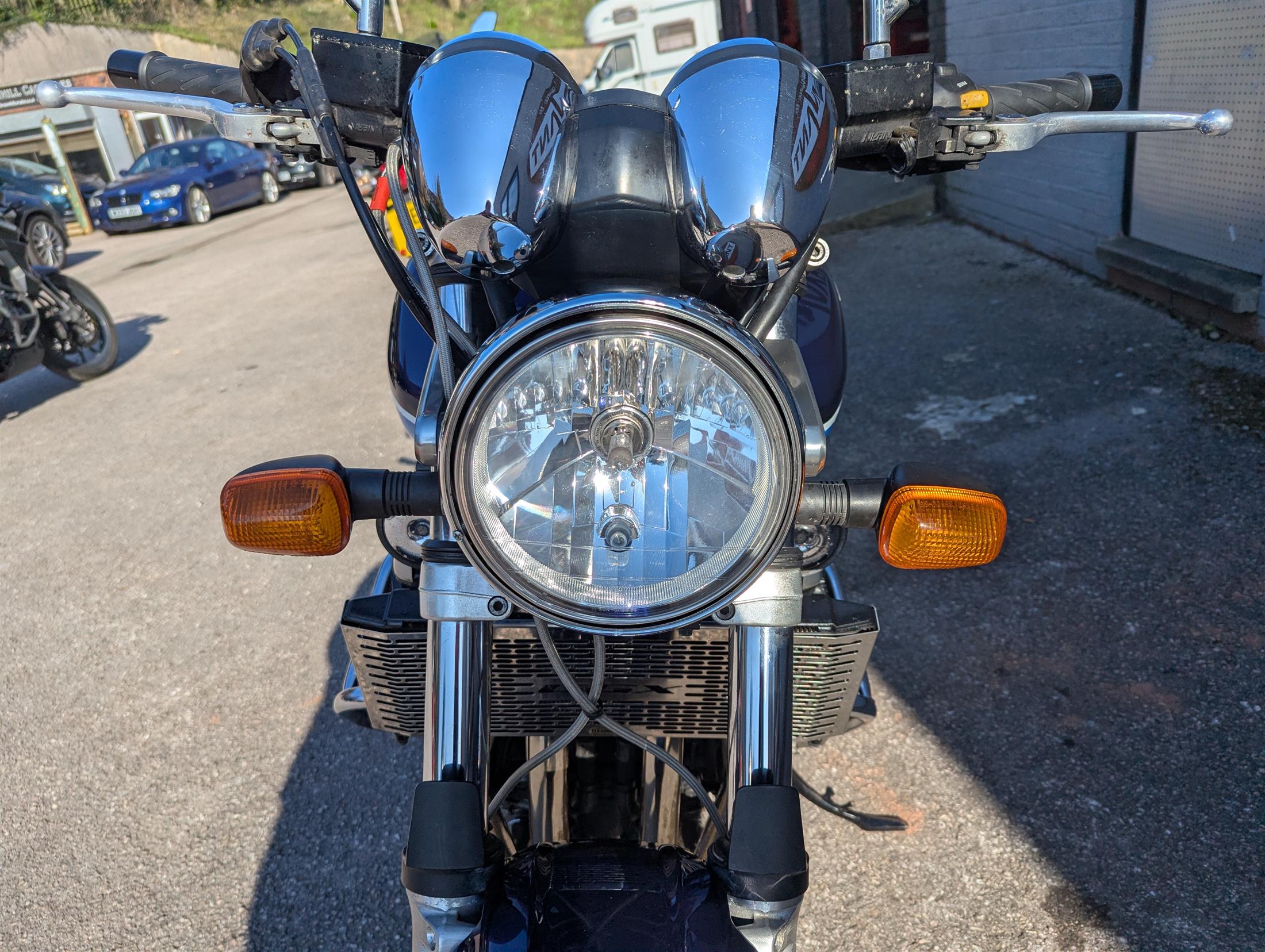 Fitted with some great extras including Beowulf Exhaust, Rear Carrier, Custom Saddle, Engine Bars, Rad Guard and Renthal Handlebars.